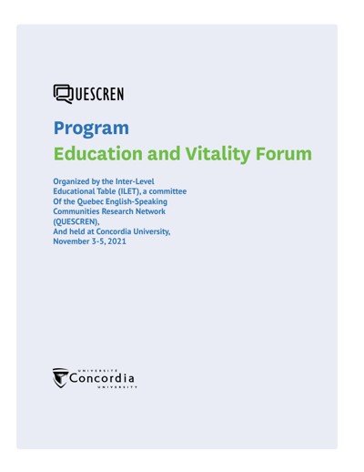 Quebec English-speaking Communities Research Network (QUESCREN). “Education and Vitality Forum,” November 3, 2021.