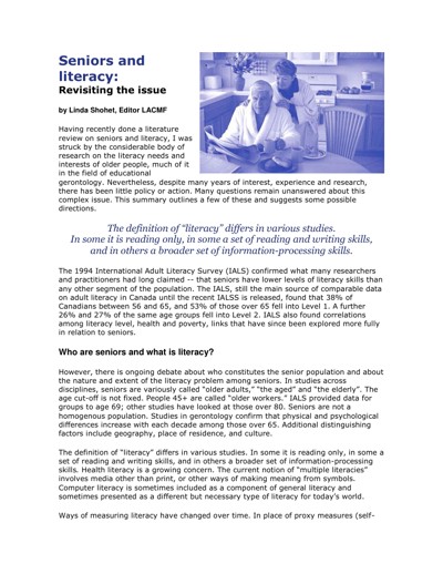 - Seniors and literacy: revisiting the issue by Linda Shohet