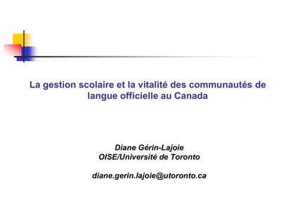 Gérin-Lajoie, Diane. “La gestion scolaire et la vitalité des communautés de langue officielle au Canada” Presented at the 92e Congrès de l’Acfas, Montréal, QC, May 9, 2025.