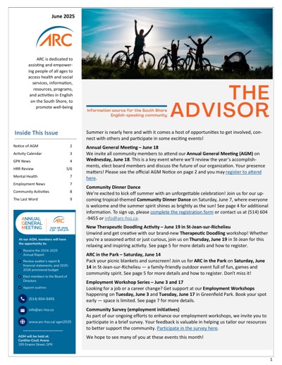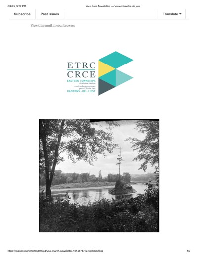 Eastern Townships Resource Centre (ETRC). “June 2025 Newsletter / Infolettre juin 2025” (June 2025).