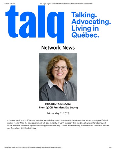 Quebec Community Groups Network (QCGN). “Network News” (May 2025).
