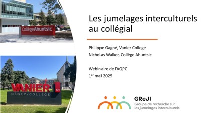 Gagné, Philippe, and Nicholas Walker. “Les jumelages interculturels au collégial” Presented at the Webinaire de l’AQPC, May 1, 2025.