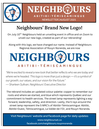 Neighbours Regional Association of Rouyn-Noranda. “Neighbours Newsletter” (August 2025).