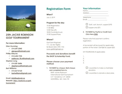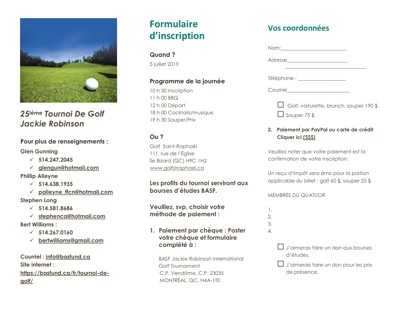 Black Academic Scholarship Fund (BASF). 25ième tournoi de golf Jackie Robinson. Brochure, 2019.