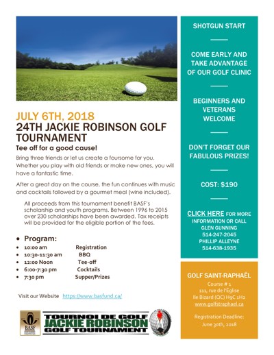 Black Academic Scholarship Fund (BASF). “24th Jackie Robinson Golf Tournament,” July 6, 2018.