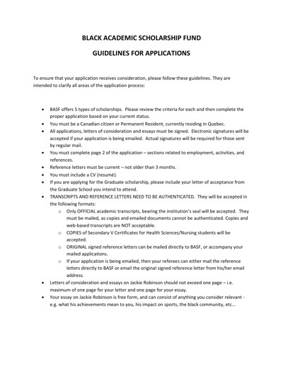 Black Academic Scholarship Fund (BASF). “Guidelines for Applications,” n.d.