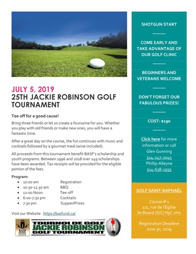 Black Academic Scholarship Fund (BASF). “25th Jackie Robinson Golf Tournament,” July 5, 2019.